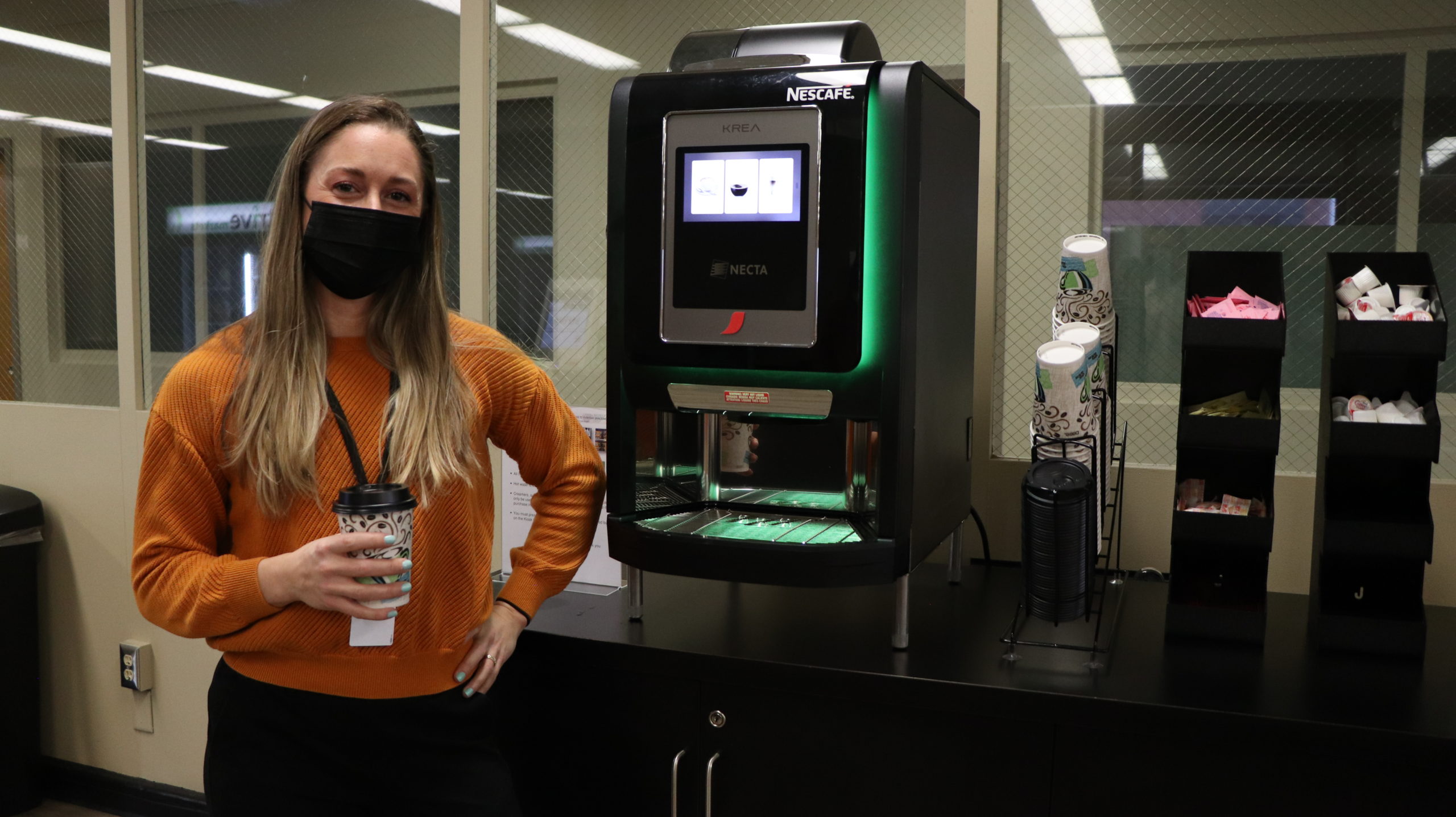 Because this is a self-service market, responsibility to pay lies with the customer. Colleagues are trusted to scan and pay for all items they take from the market, and Buffalo Strive has set up their own camera.
