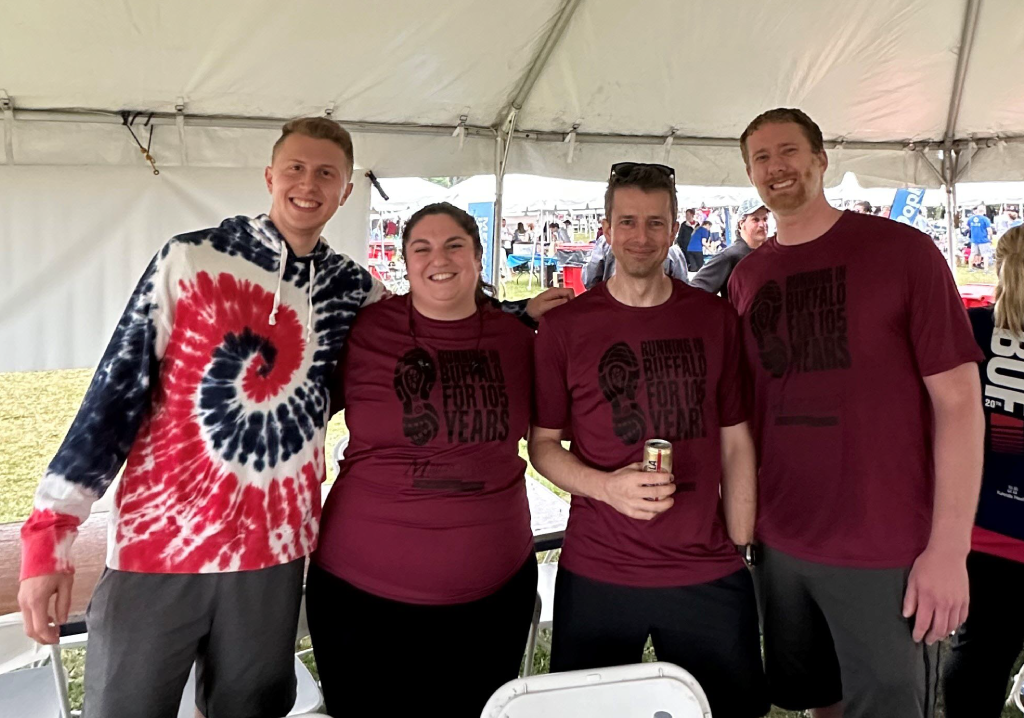 After crossing the finish line, Merchants colleagues and their guests headed back to the company tent for a delicious dinner catered by Buffalo’s Best Catering by Kim and dessert provided by fellow colleagues.