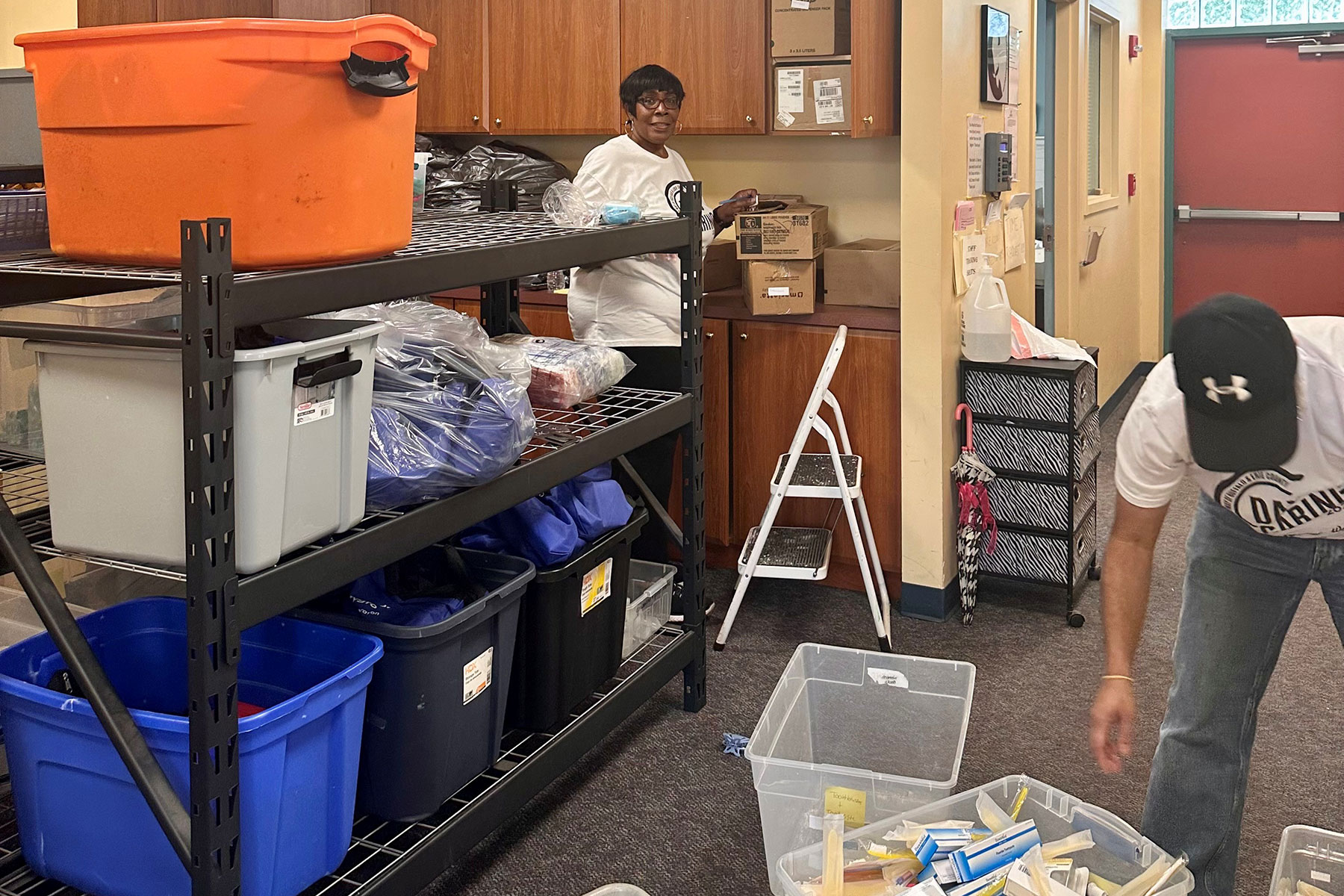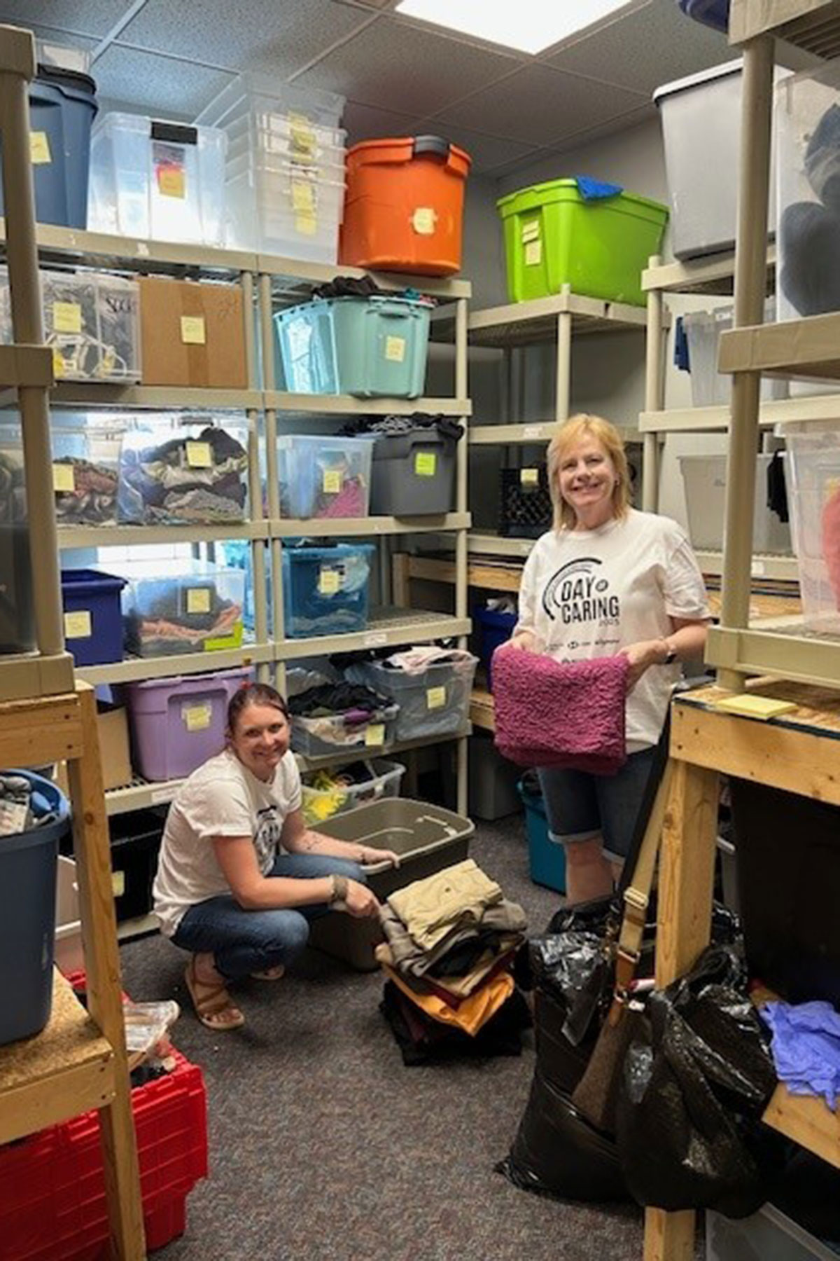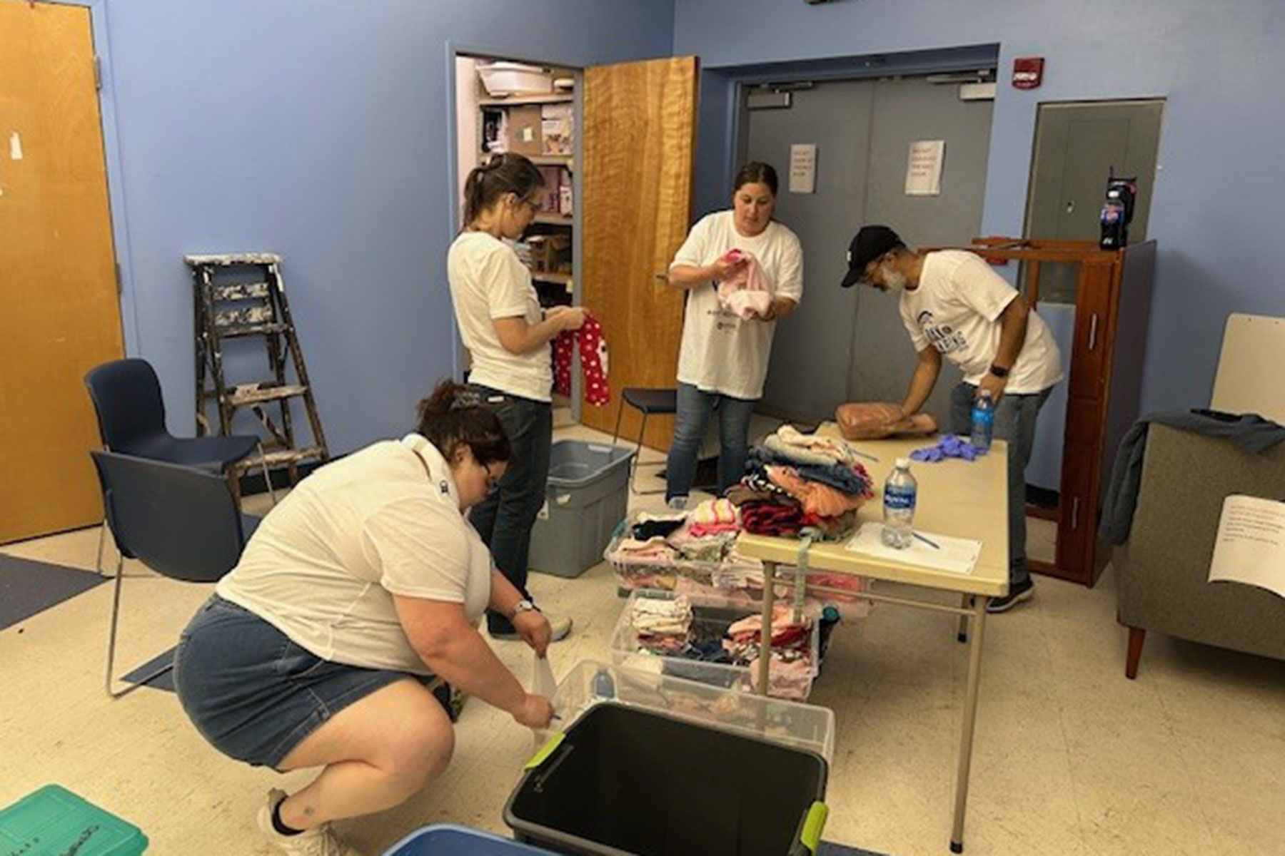 At Compass House, colleagues sorted donations including clothes for all ages, toiletries, school supplies, and household goods.
