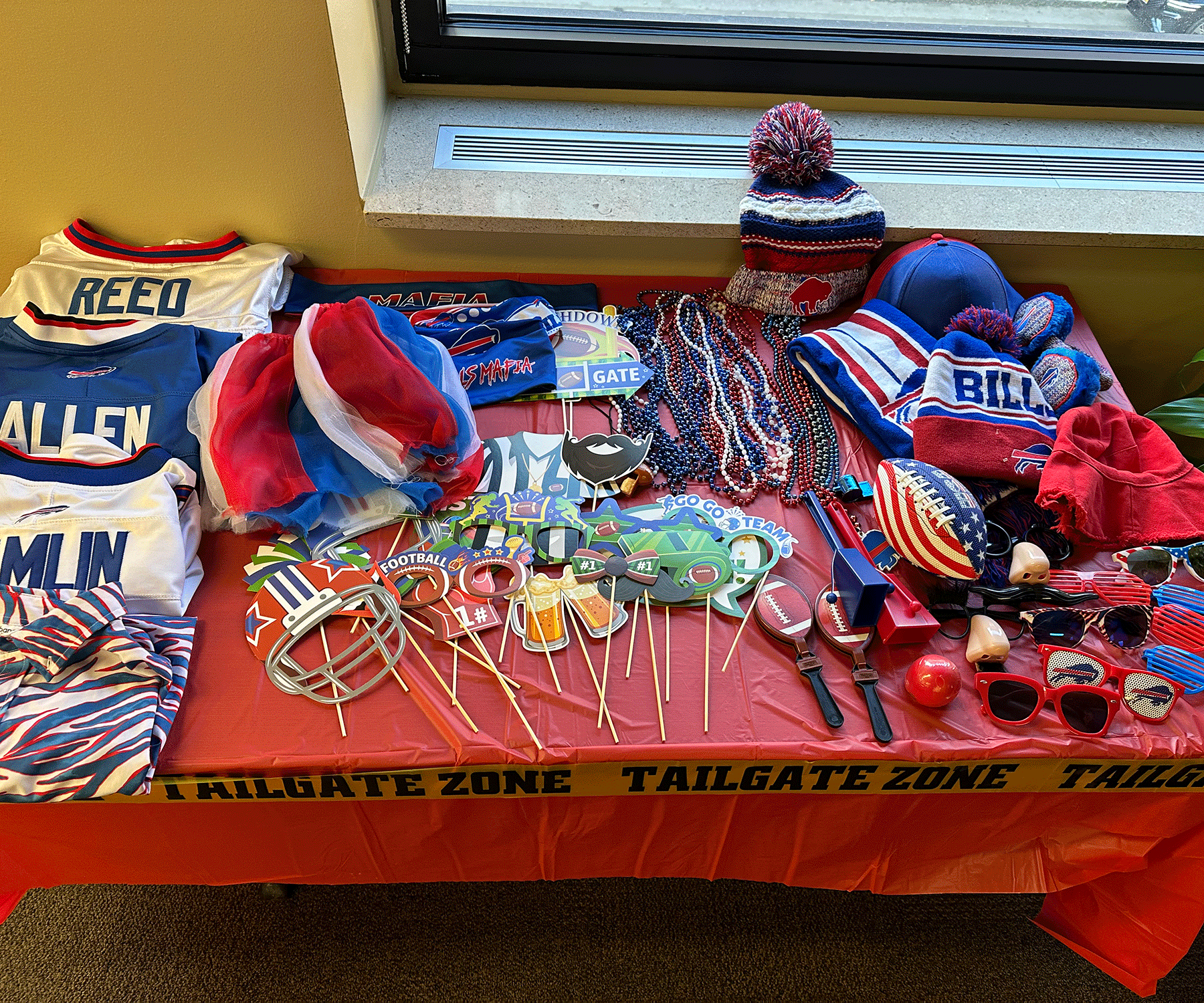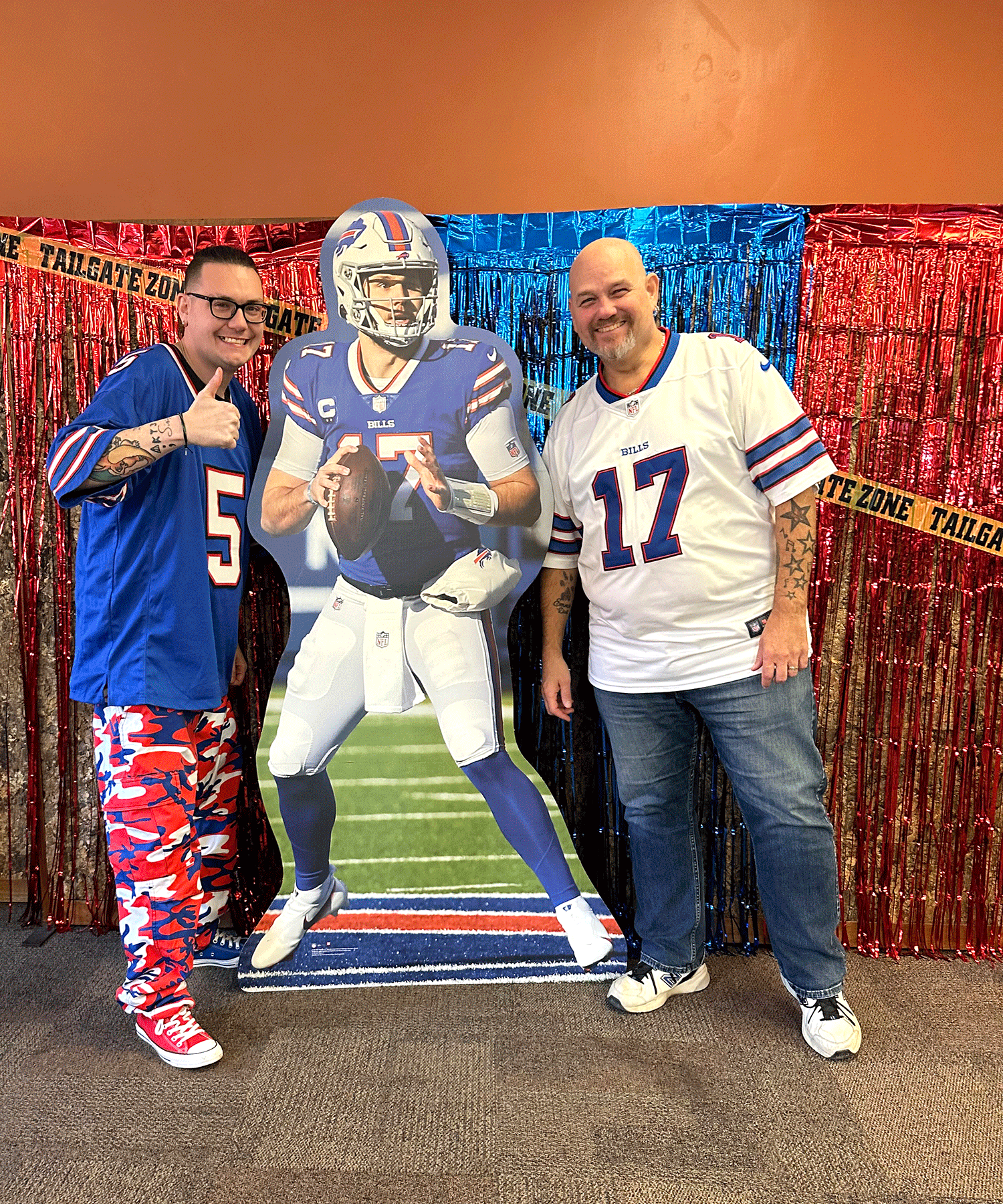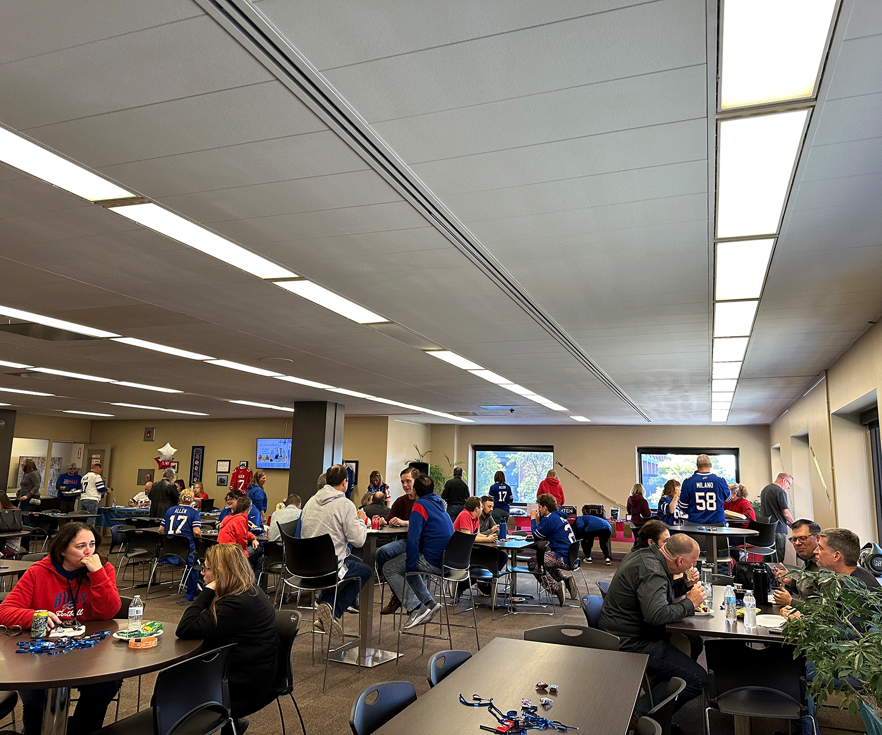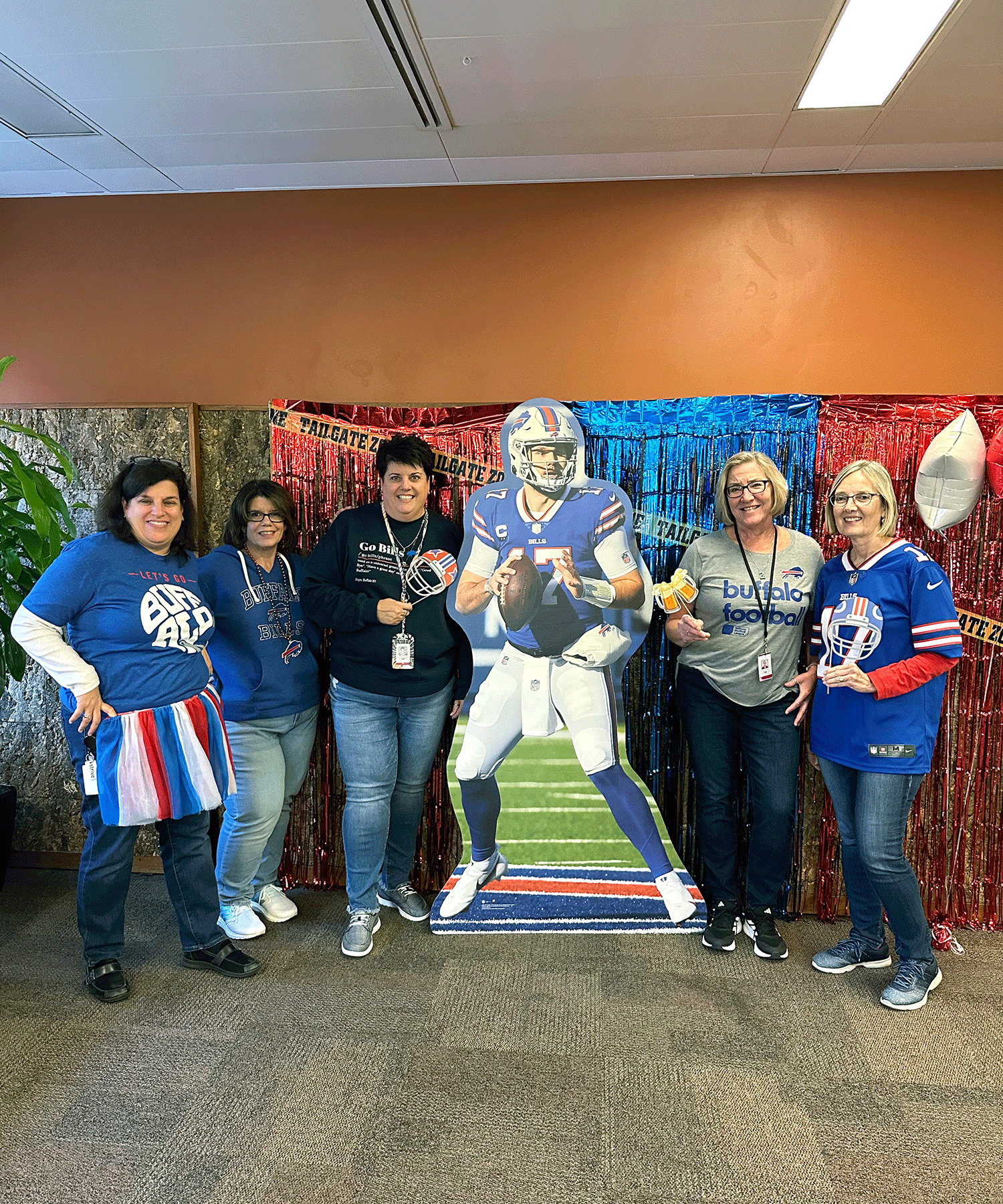 The breakroom was full of blue, white, and red as colleagues came decked out in their Bills best.