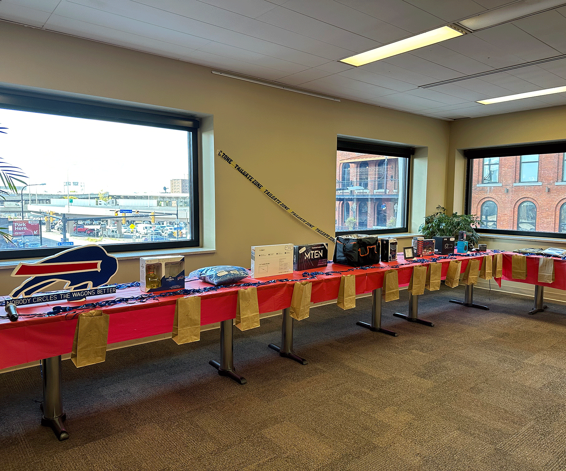 • A collection of prizes such as Bills memorabilia, tailgate essentials, lawn games, Buffalo Sabres tickets, and more!