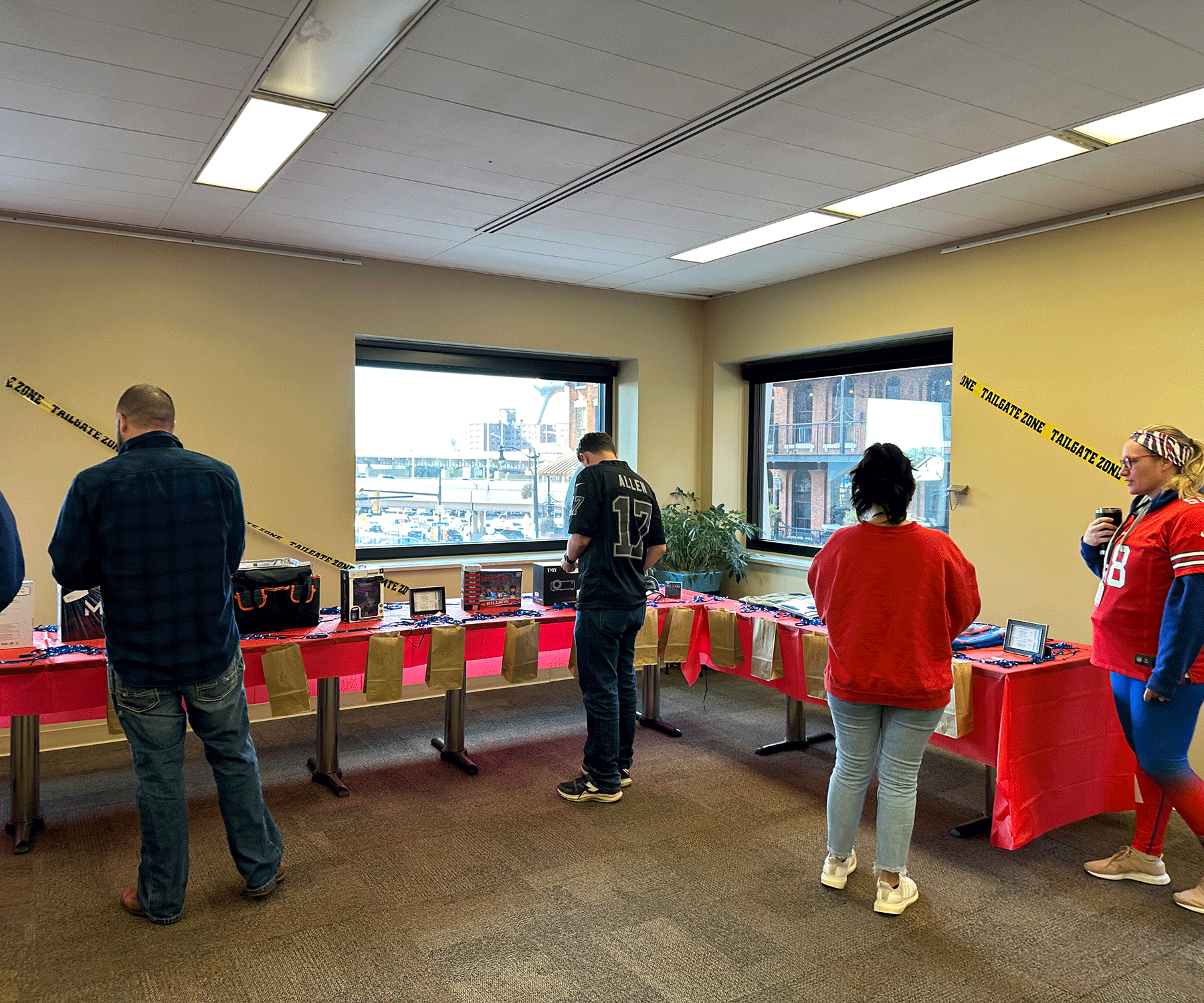Following a Monday night win against the Jets and just ahead of a match-up against the Titans, corporate colleagues were ready to show their team spirit as they gathered for a “tailgate” lunch and other Bills-themed fun, all to benefit this year’s United Way campaign.