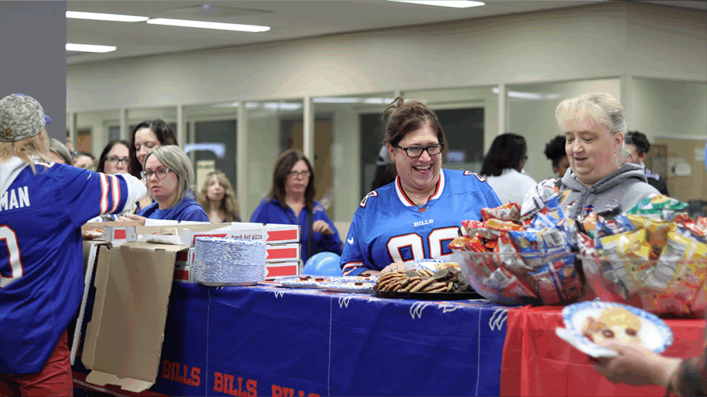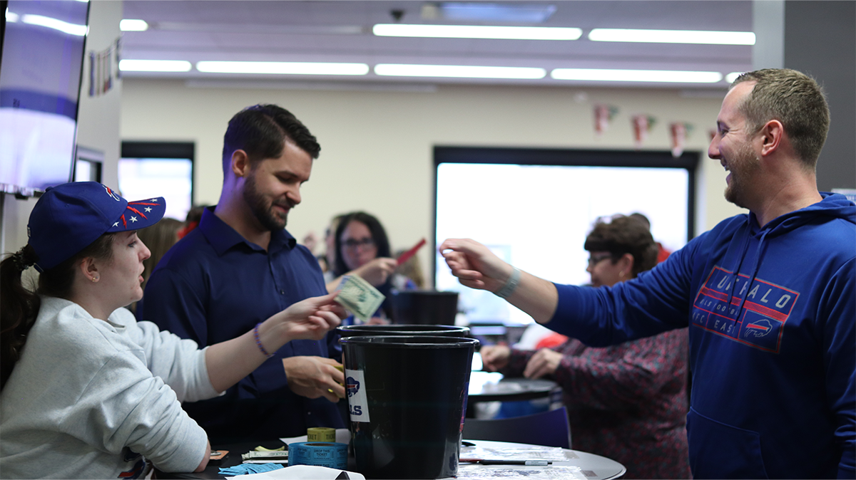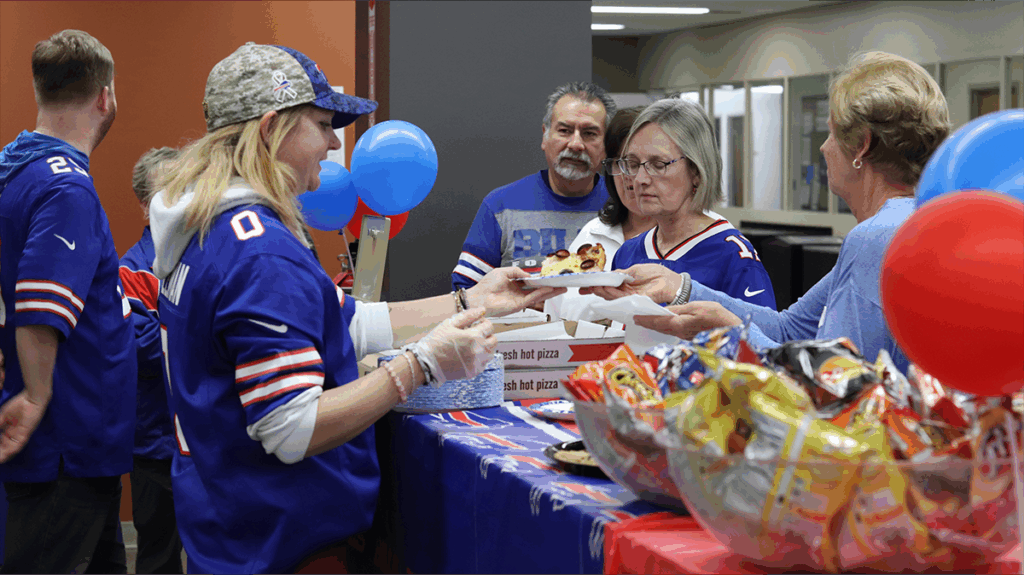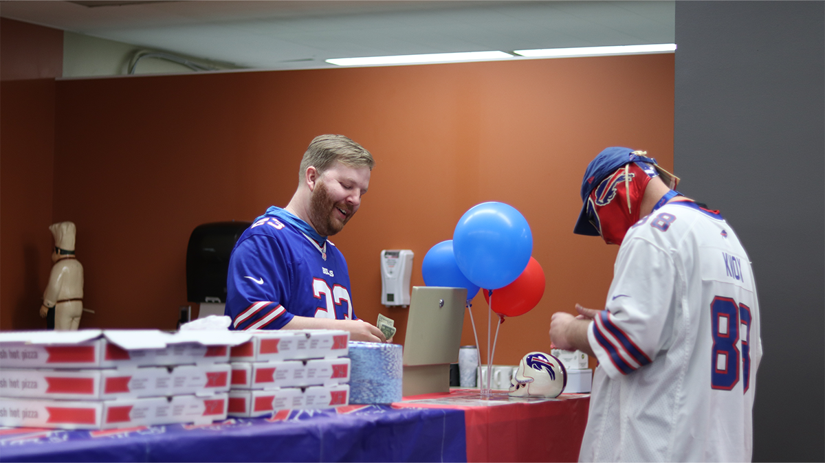 Colleagues enjoyed pizza, snacks, and time spent together while raising funds to benefit this year’s United Way campaign. The event offered a great opportunity to celebrate team spirit for both the Buffalo Bills and Team Merchants as colleagues rallied together to support United Way and the communities it serves.