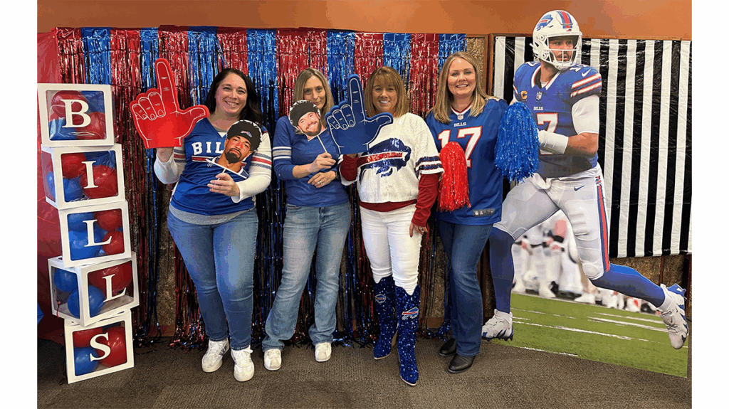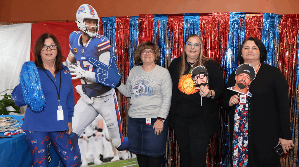 All colleagues showed their team spirit, decked out in Bills blue, red, and white.
