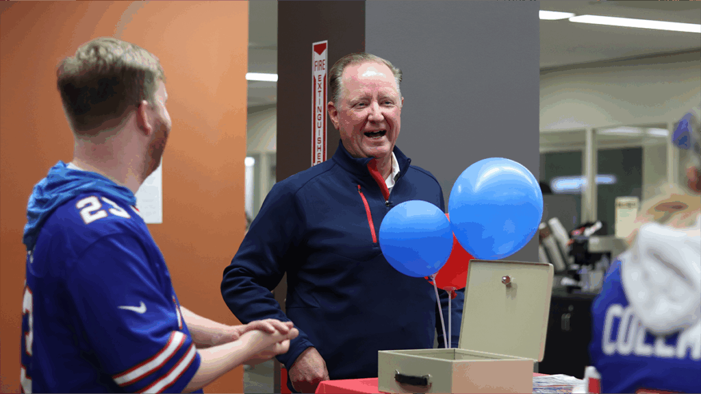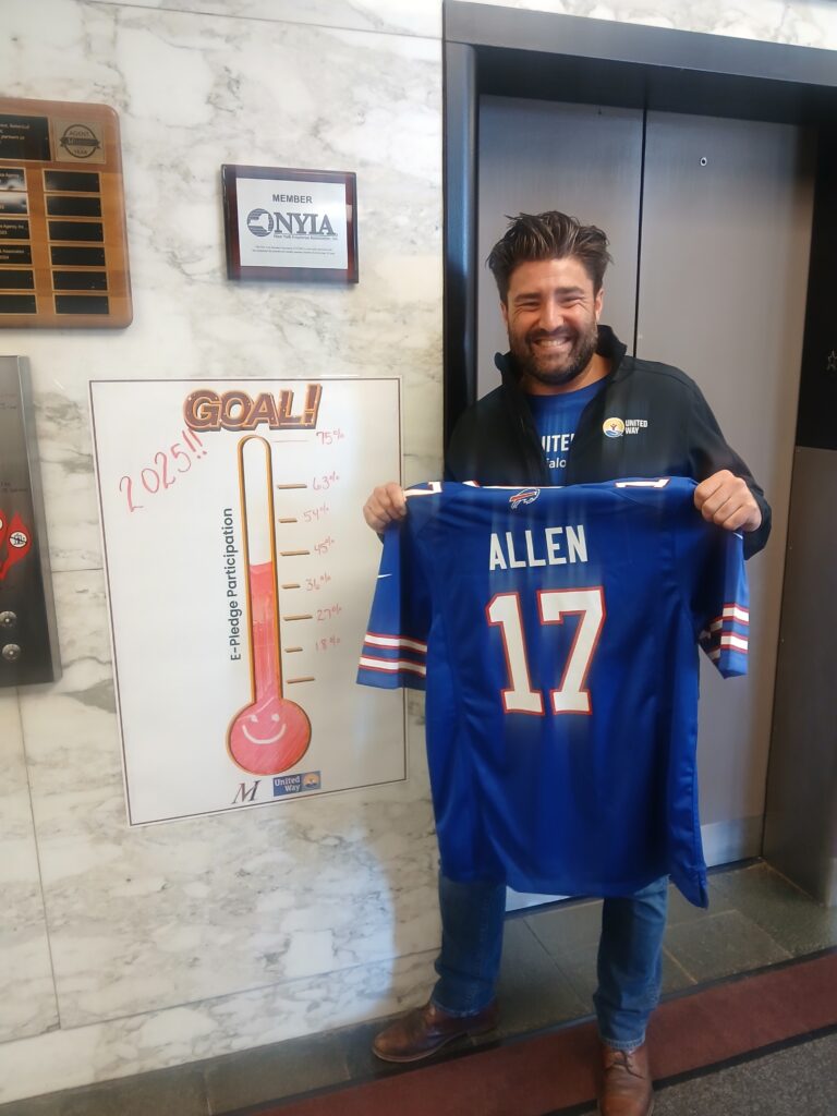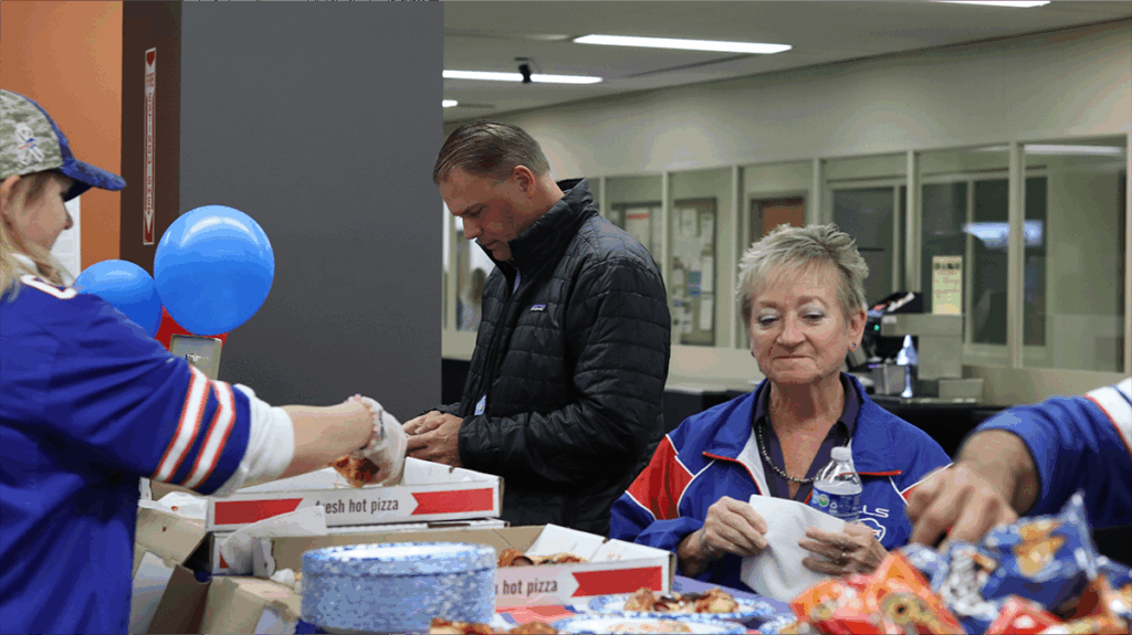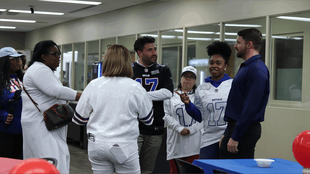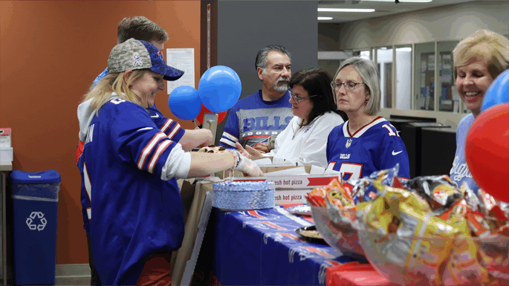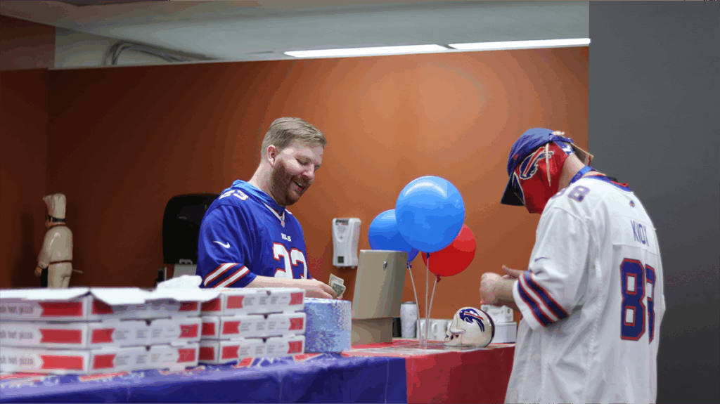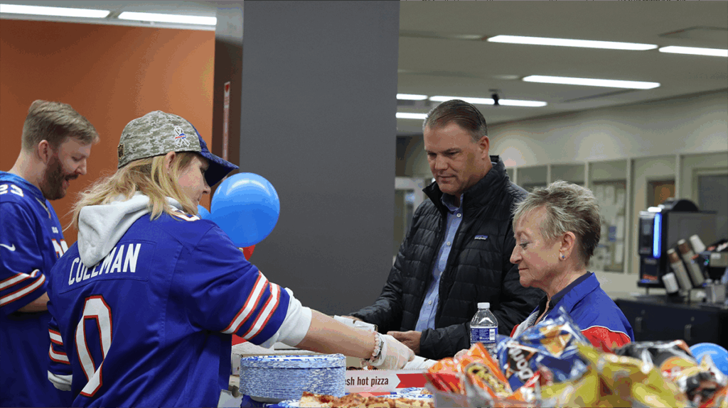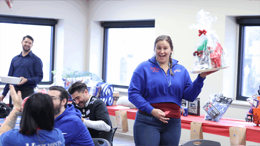 The annual event, previously known as the Bills Tailgate Lunch, supports Merchants’ United Way campaign and is one of the most anticipated fundraisers of the year. Since the Buffalo Bills were on their bye week, colleagues traded in the event’s usual game-day grilling for a pizza party, complete with themed decor and raffle prizes, including Josh Allen and James Cook jerseys.