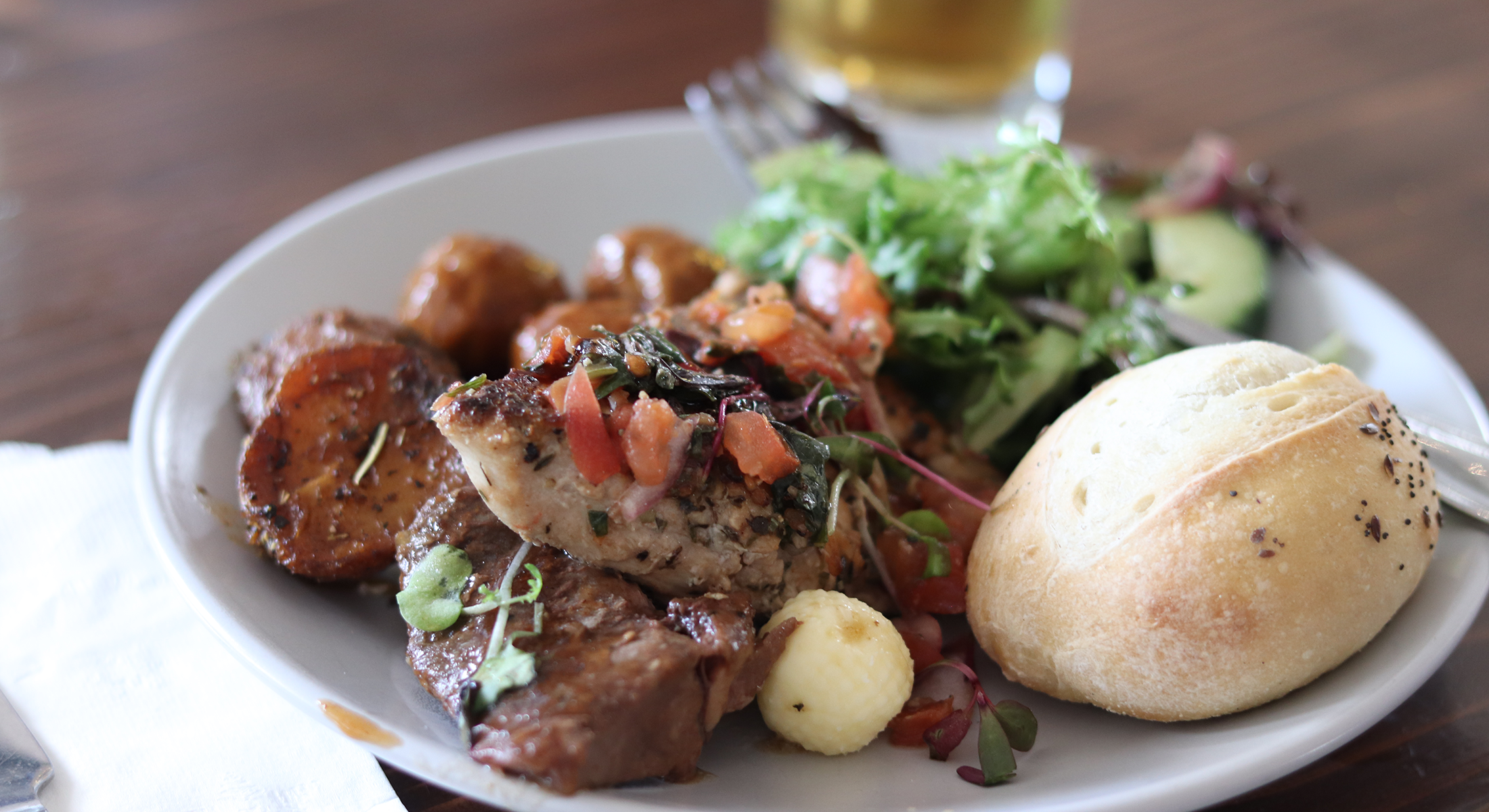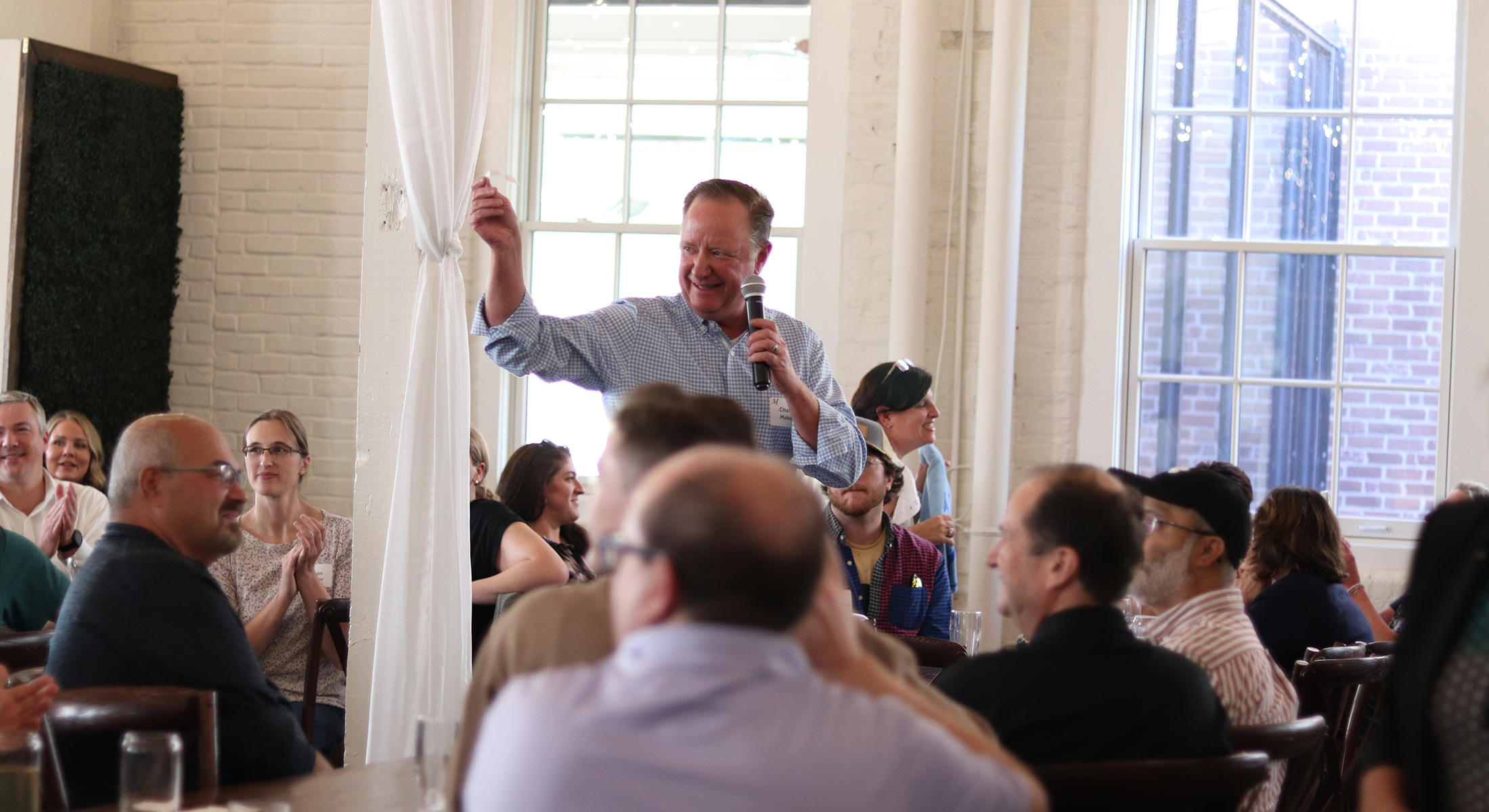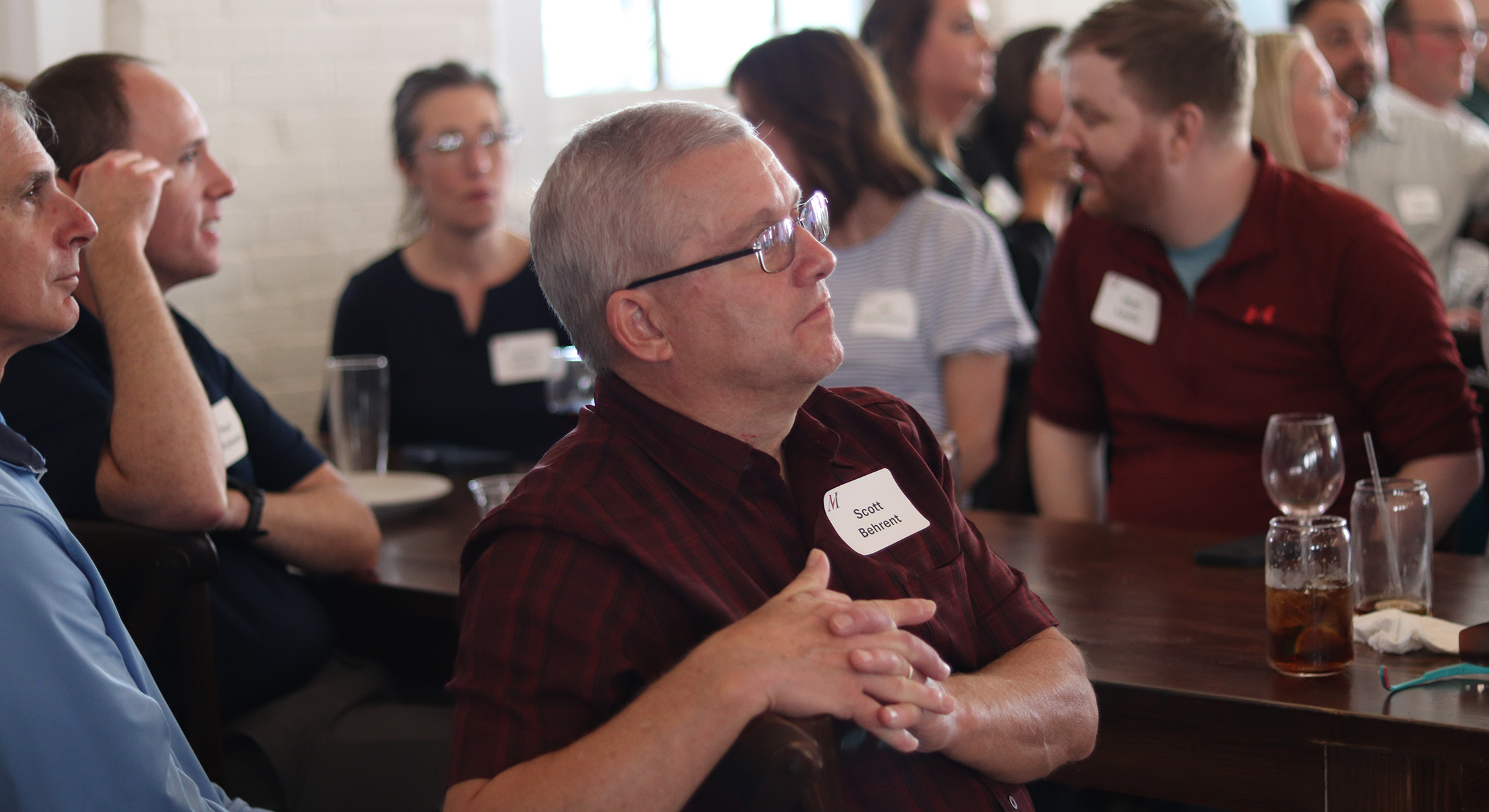 This year’s event brought colleagues together to enjoy hors d’oeuvres, beverages of their choice, a slideshow of Merchants highlights from the past year, and of course, each other’s company. Dinner included a buffet with salad, seasonal vegetables, roasted potatoes, slow braised beef, salmon with dill sauce, and Tuscan chicken bruschetta (vegetarian and vegan colleagues enjoyed a stuffed pepper entree with quinoa and vegetables!).