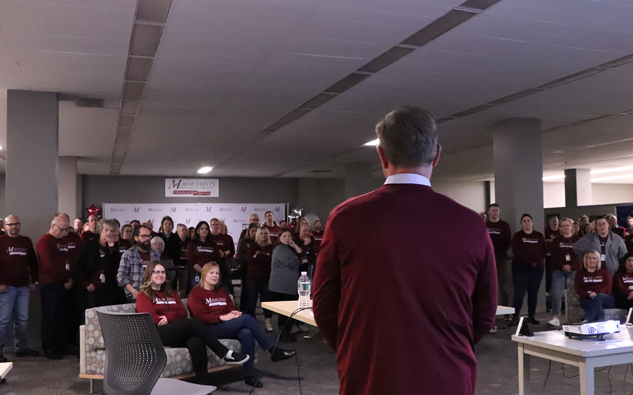 Colleagues wore matching Merchants’ 105th Anniversary shirts (or, as we call company merchandise, MerchantsDise!) to commemorate the occasion!
