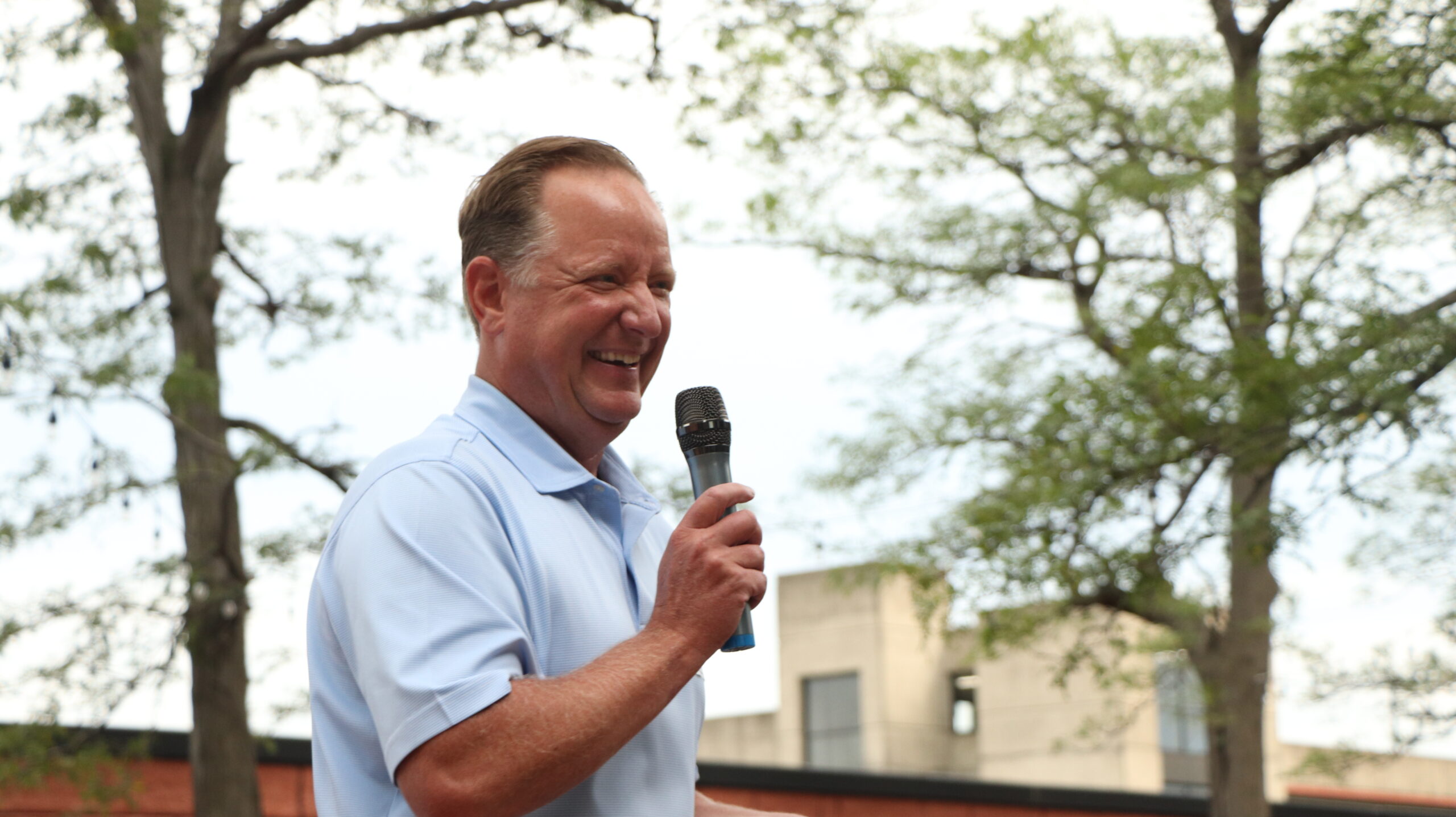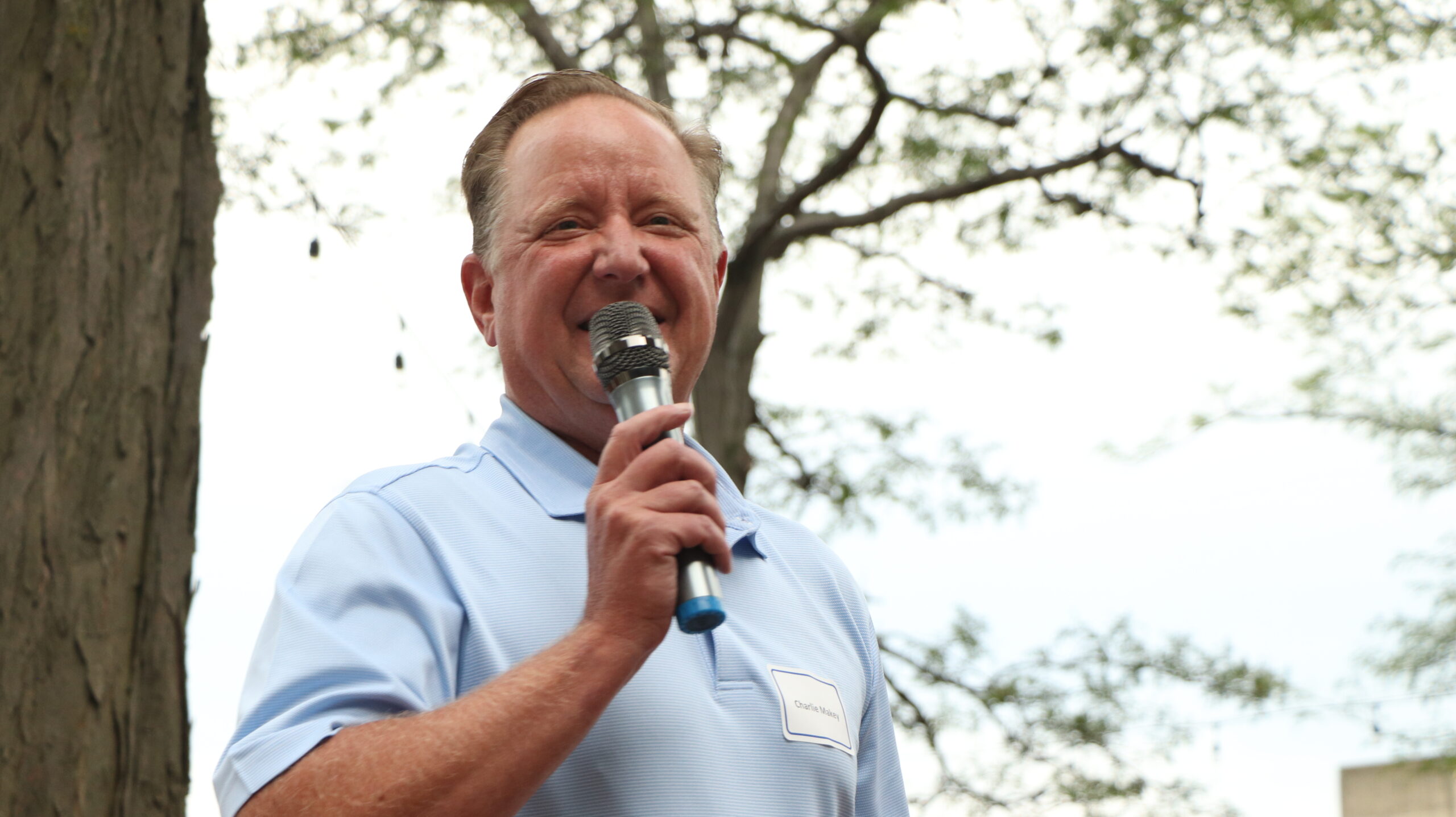 Charles Makey, Merchants Insurance Group president, welcomes colleagues to the company’s first large-scale social excursion since pre-pandemic.