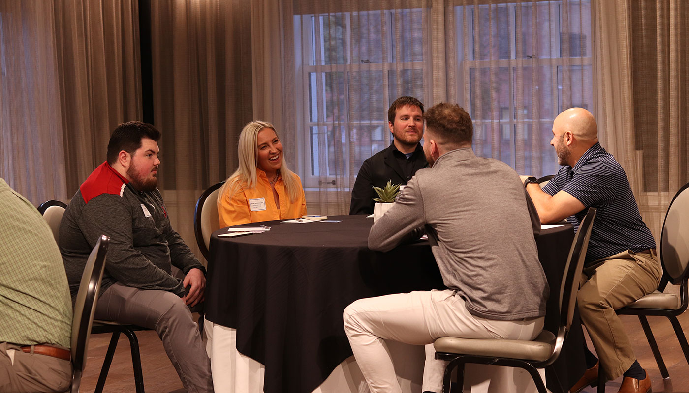 Attendees at dinner with Merchants special guest Joseph Meyer, Senior Vice President of Underwriting, Product Management, and Corporate Programs